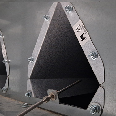Zwężane daszki kanałów suszących zostały zoptymalizowane w celu zapewnienia równomiernego ciśnienia oraz przepływu powietrza w kolumnie suszącej. Dzięki tej precyzyjnie dopracowanej konstrukcji, ziarno jest suszone równomiernie - nawet w przypadku wysokiej wilgotności. Daszki wykonane są z najwyższej jakości stali nierdzewnej, która nie tylko wytrzymuje ciężar materiału, ale również gwarantuje wyjątkową odporność na korozje, nawet w najbardziej wymagających warunkach pracy.