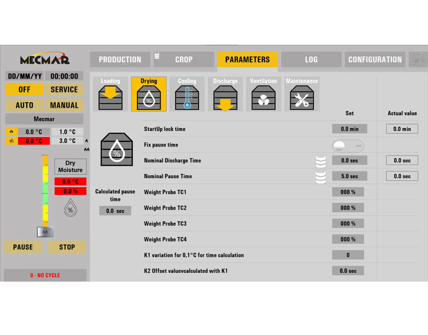 System sterowania umożliwia automatyczne lub ręczne regulowanie ilości ziarna odprowadzanego u podstawy suszarni za pomocą zaworu pneumatycznego. Dynamiczne otwieranie zaworu zapobiega blokowaniu się materiału podczas zrzutu.