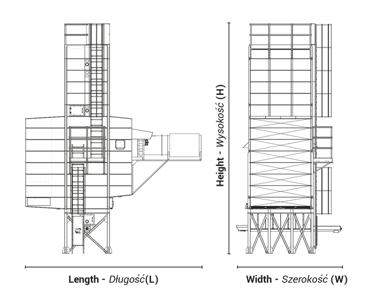 Pojemność (0,75t/m3) | Holding capacity (maize 0,75 ton/m3) | t | 24 | 30 | 36 | 42 | 49 | 60 | 72 | 85 | 97 | 90 | 107 | 127 | 145 | 164 | 182 | 200 | 219 | 237 |